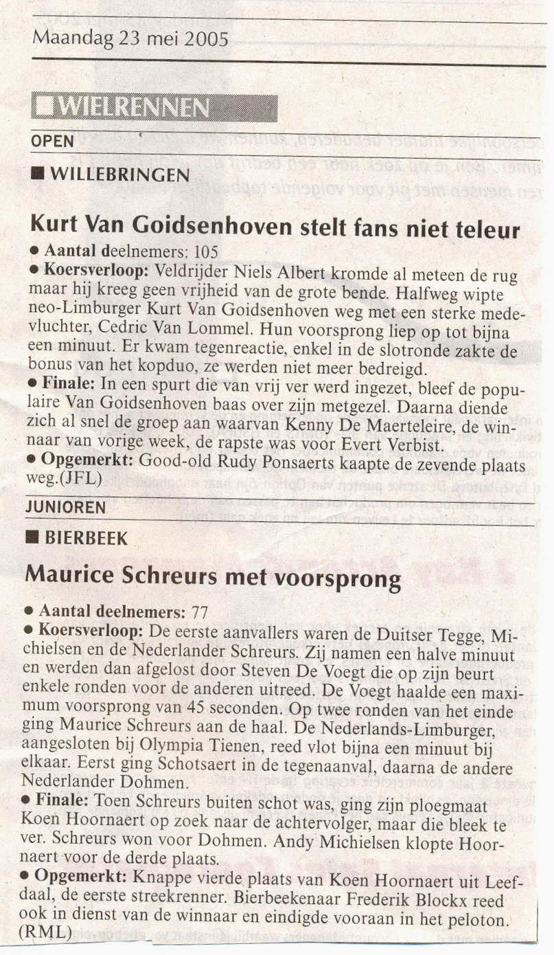 Bierbeek : donderdag 26-05-2005 - elite z.c. - 97 dlrs
