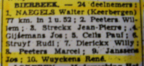 | 1976 | 29/aug | St. Kamillus | nieuwelingen | 25 | Rudi Vereecken | DanieL De Keyser | Rudi Hermans |