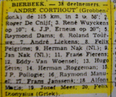| 1970 | 13/sep | centrum | nieuwelingen | 35 | Paul Huygelen | Paul Celis | Bruno Vranckx |
