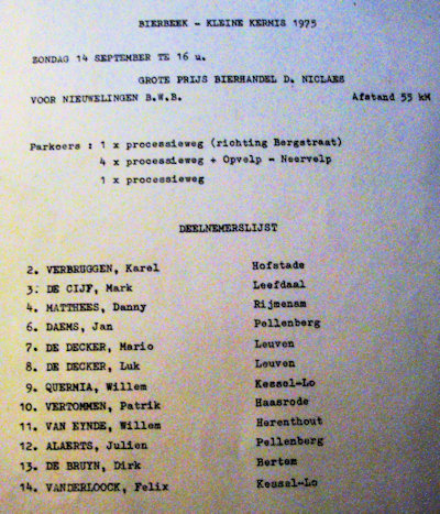 | 1975 | 10/aug | Bremt | nieuwelingen | 47 | Freddy Selleslagh | Jean-Marie Wampers | Guido Van Geystelen |